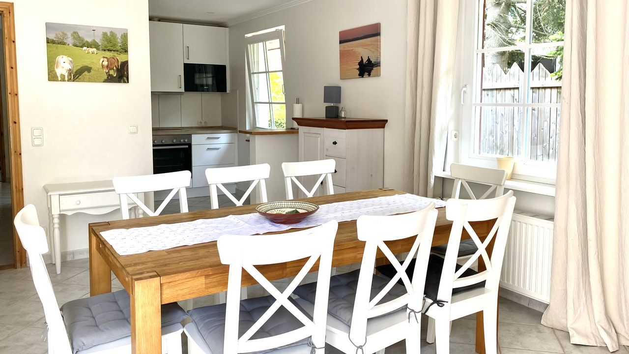 Das große Wohnzimmer mit offener Küche und großem Esstisch bietet für eine gesellige Runde viel Platz.